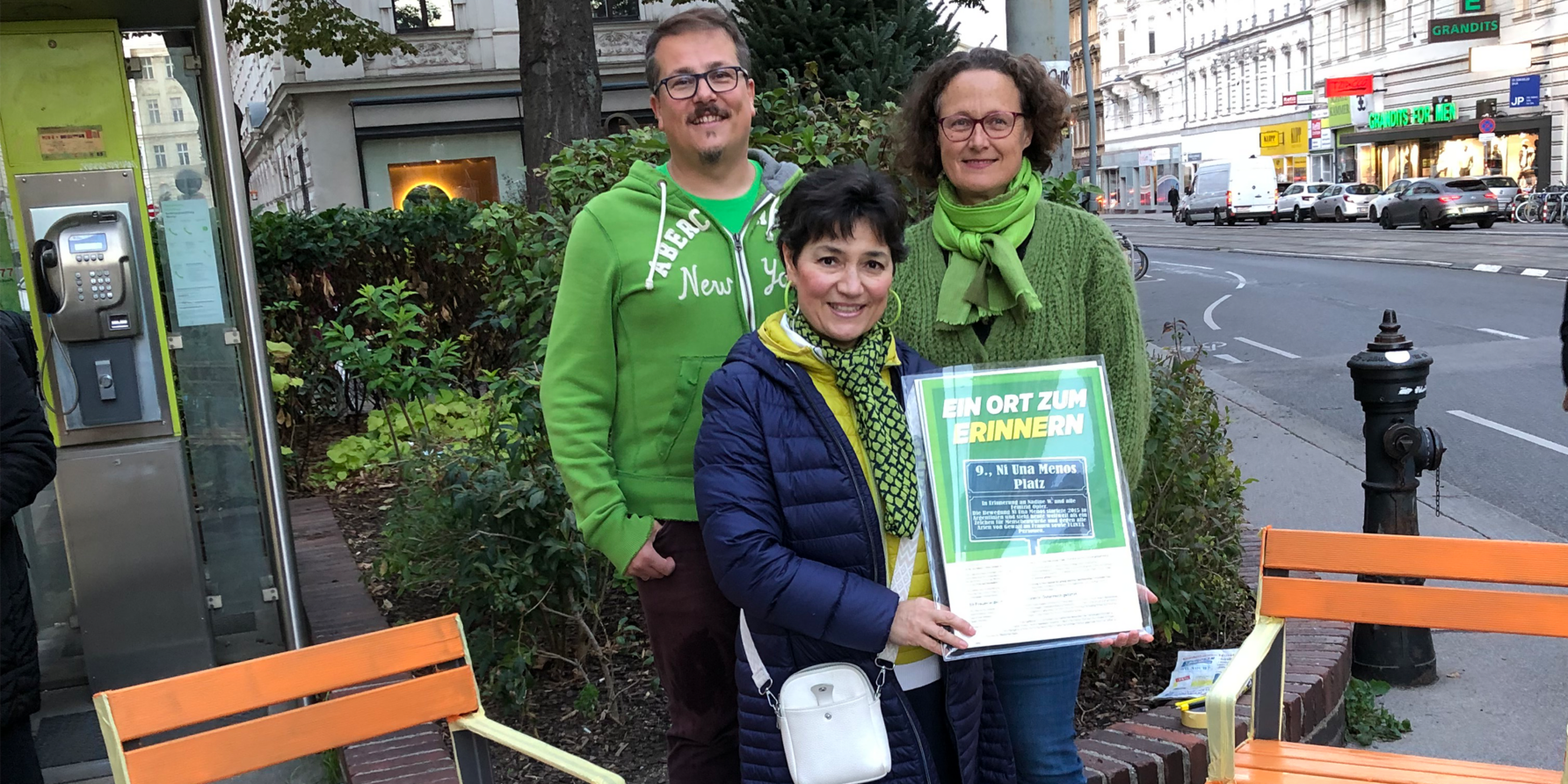 Angesichts der grausamen Tat in der damaligen Trafik in der Nußdorferstr. 4 haben wir im Bezirksparlament einen Antrag für die Umbenennung der gegenüberliegenden Grünfläche von der Trafik auf Ni-Una-Menos-Park gestellt. Dieser Park sollte an an Nadine erinnern und ein Ort des Protests gegen Femizide werden. Der Antrag wurde der Kulturkommission vorgelegt, die sich nach mehreren Beratungen für eine Platzbenennung entschieden hat.